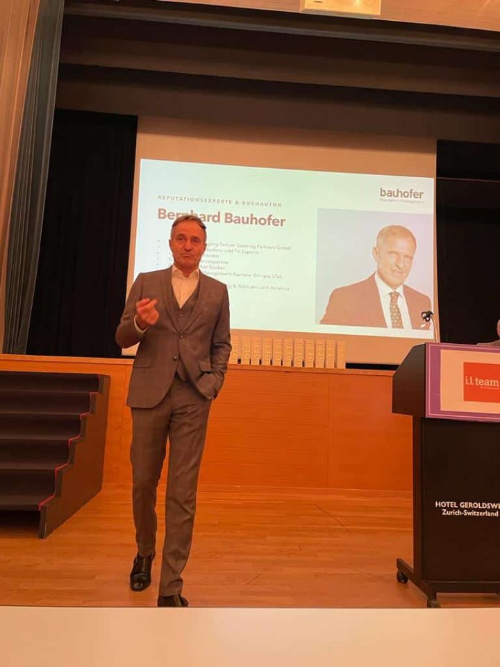 Bernhard Bauhofer hat sich als Pionier für Reputation Management einen Namen gemacht. Seit Jahren wird er von Schweizer und internationalen Medien wie Bloomberg oder CNBC interviewt. Sein Platz ist aber auch auf der Bühne, wo er als Redner und Moderator zu zentralen Fragen unserer Zeit Stellung bezieht.