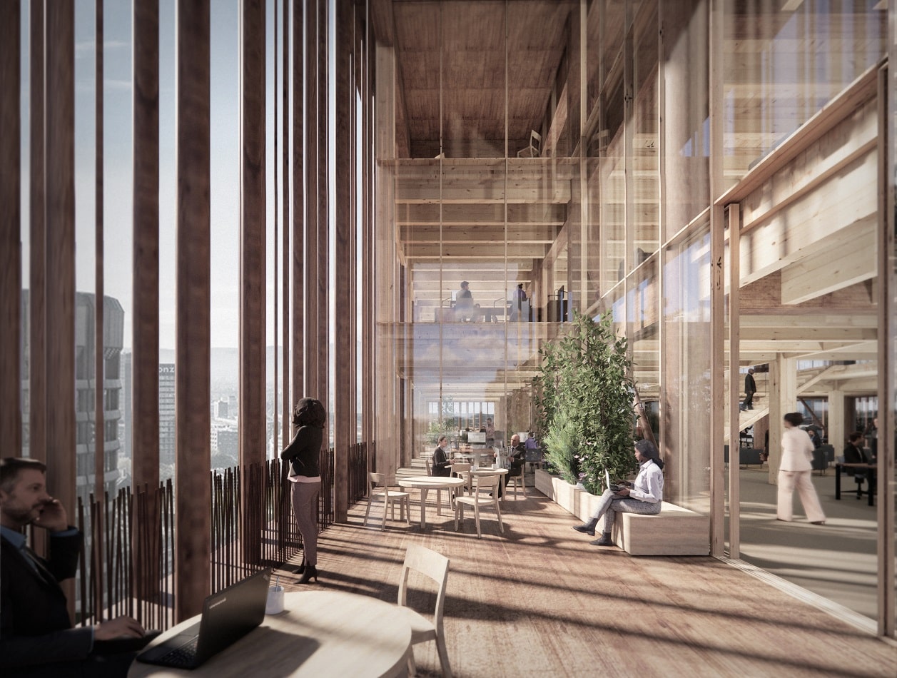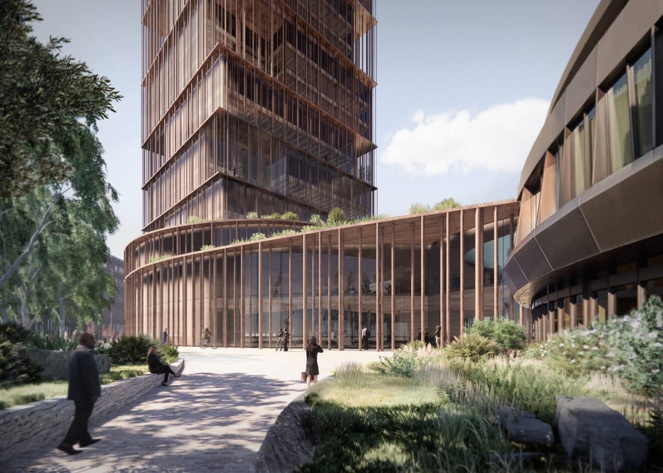 Die Jury lobte den Beitrag von Elemental und Nissen Wentzlaf für sein «innovatives und nachhaltiges Design». Es soll sich um ein Hochhaus in Holzbauweise handeln. Wobei im aktuellen Entwurfsstand die grossflächige Verglasung der Fassade der Idee der Nachhaltigkeit im Weg steht. Da besteht Verbesserungsbedarf. Der zweite Turm auf dem BIZ-Areal des Hauptsitzes, der mit dem bestehenden und von Martin Burckhardt entworfenen Turm verbunden sein soll, wird einen weiteren städtebaulichen Akzent am Bahnhof setzen. Nach Auffassung der Jury habe der Entwurf das Potenzial, «die wachsende Skyline von Basel» zu bereichern, und passe «gut zu den geplanten Entwicklungen der näheren Umgebung». Die geplante Höhe des zweiten Turms von 107 Metern gibt dennoch Anlass zu Fragen. Er überragt damit den ersten BIZ-Turm um fast 40 Meter und ebenso das gegenüberliegende Baloise Hochhaus von Miller & Maranta. Der Entwurf bilde «einen eleganten Kontrast zum architektonischen Ausdruck des bestehenden Turms und ergänzt den Grundriss des ursprünglichen Entwurfs von Burckhardt.» Leider wurden keine Pläne publiziert, weshalb sich diese Aussage nur bedingt nachvollziehen lässt. Auf den Visualisierungen wirkt der Dialog zwischen den beiden Türmenn noch etwas holprig. Die Jury schätzte den Entwurf ausserdem wegen der umfassenden Verwendung von Holz und dessen «waldähnliche» Fassade. Sie weist eine verblüffende Ähnlichkeit mit dem Asklepios-Hochhaus von Herzog & de Meuron auf dem Novartis Campus auf. Handelt es sich um eine subtile Hommage an HdM?