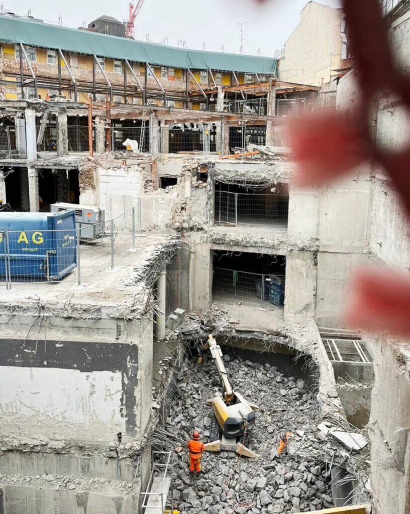 Wo vor kurzem noch eine riesige Grube hinter der deckmalgeschützten Fassade war, befinden sich nun bereits fast zwei Stockwerke. «Das Jahresendziel ist erreicht!», schreibt der Projektleiter Andrin Sennhauser auf LinkedIn. Das Projekt schreite bestens voran.